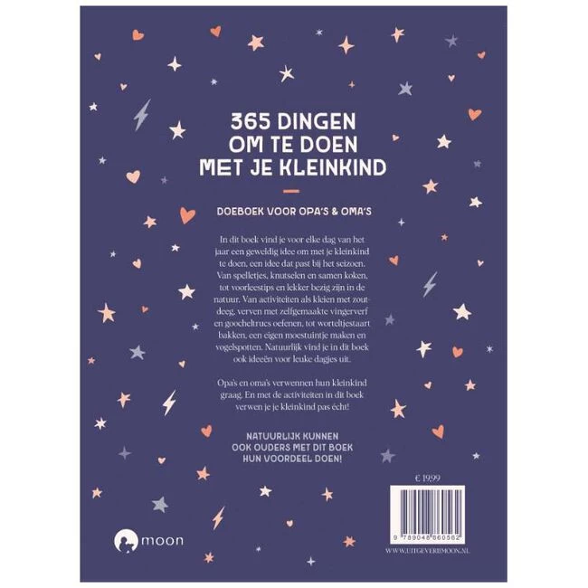 Voor elke dag van het jaar een geweldig idee om met je kleinkind te doen, een idee dat past bij het seizoen. Van buitenactiviteiten, spelletjes, knutselen en samen koken, tot voorleestips en lekker bezig zijn in de natuur. Van activiteiten als kleien met zoutdeeg, kliederen met zelfgemaakte vingerverf en goocheltrucs oefenen, tot worteltjestaart bakken, een eigen moestuintje maken en vogelspotten. Natuurlijk vind je in dit boek ook ideeën voor leuke dagjes uit. Opa’s en oma’s verwennen hun kleinkind graag. En met de activiteiten in dit boek verwen je je kleinkind pas écht! Tip: natuurlijk kunnen ook ouders met dit boek hun voordeel doen!