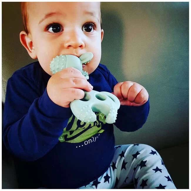 De Bite me Raff bijtring is ontzettend handig als tandjes bijna doorkomen. Door de openingen is de bijtring voor kleintjes makkelijk vast te houden. Vrij van ftalaten, PBA en PVC vrij en gemaakt van FDA gecertificeerd materiaal. De Bite me raff wordt geleverd in een bruin kartonnen doosje en is ook ontzettend leuk om als kraamcadeautje te geven. Afmetingen: 4x8x12cm.