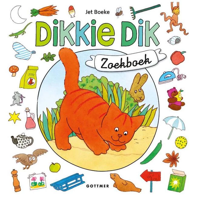 Een stevig kartonboek vol zoekplaten om van alles op te zien en ontdekken! Concepten leren Samen met Dikkie Dik kunnen nieuwsgierige peuters op speurtocht in huis en in de tuin. Op de zoekplaten vinden ze allerlei elementen terug die in de kantlijn afgebeeld staan. Zo leren ze waardevolle concepten en woorden tijdens het zoeken en spelen!