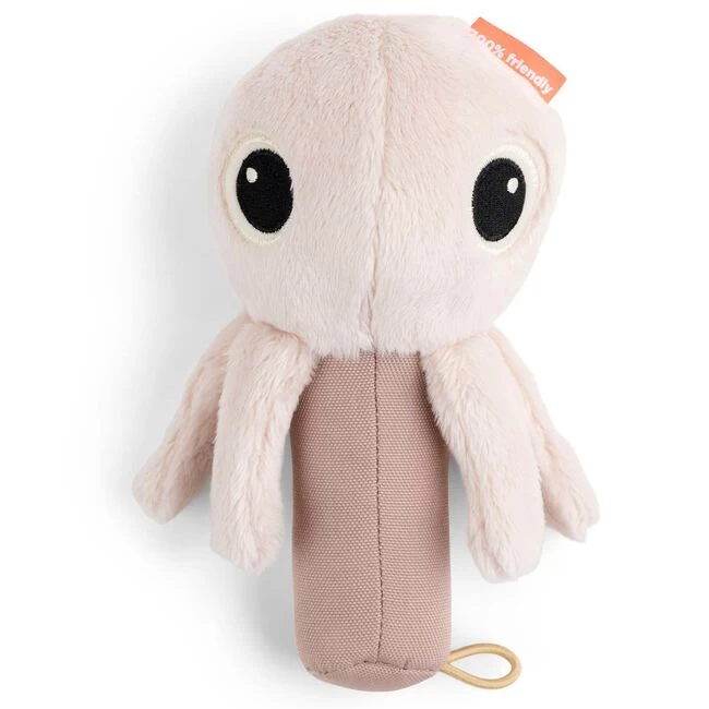 Deze leuke rammelaar van Done by Deer Jelly is een musthave voor jouw kindje. De Jelly-rammelaar heeft zachte zintuiglijke poten die kreukelen wanneer kleine nieuwsgierige handjes beginnen te verkennen. Het handvat is gemakkelijk vast te pakken door je kleintje en als het wordt ingedrukt, maakt het een piepend geluid. Schud de kleine kwal en hij zal een lief ratelend geluid maken. Ook is de rammelaar heerlijk om mee te knuffelen. Gemaakt van 100% polyester. Vulling: 100% polyestervezels (gerecycled). Leuk om cadeau te geven!
