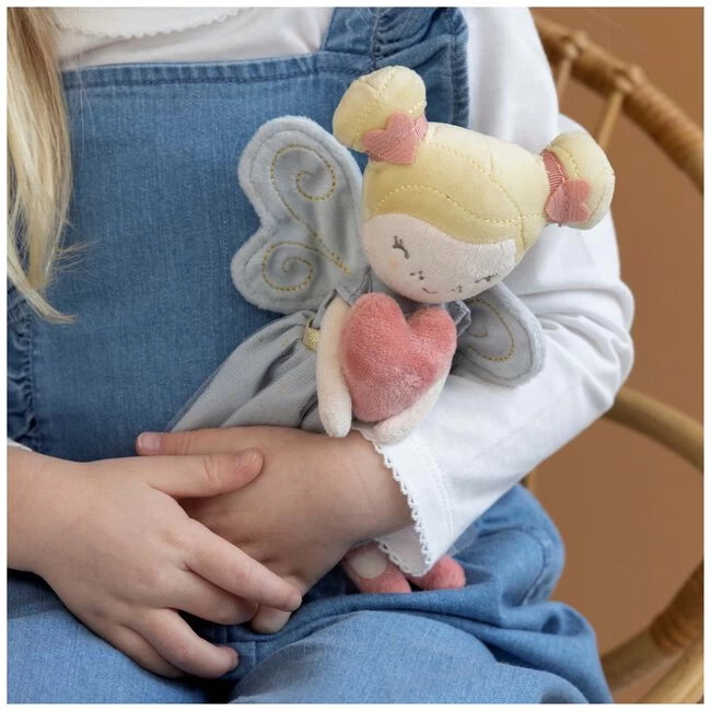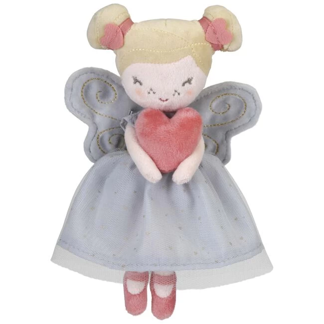 Het feetje van de liefde: fee Fay. Ze brengt liefde voor jou en iedereen om je heen. Er is genoeg om rond te strooien. Vanuit een magische wereld hier ver vandaan is feetje Fay naar je toe gekomen om je te betoveren met haar liefdevolle hart. Ze is je beste vriendin en zal er altijd voor je zijn. Met haar schattige lichtblauwe jurk, vleugels met gouddraad, blond haar in twee knotjes en ballerinaschoenen, zal Fay zeker alle kinderhartjes vervullen met liefde. Deze lieve zachte fee stimuleert de verbeelding, brengt sprookjes tot leven en voegt magie toe aan de kindertijd.Met dit lieve kleine Little Dutch feetje kan je kindje heerlijk knuffelen en spelen. Het feetje is heerlijk zacht en makkelijk mee te nemen. Wordt dit feetje het beste vriendje van jouw kindje? Ook erg leuk om cadeau te geven. Afmetingen: 20x12x8 cm. Geschikt vanaf 1 jaar.