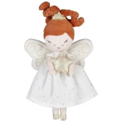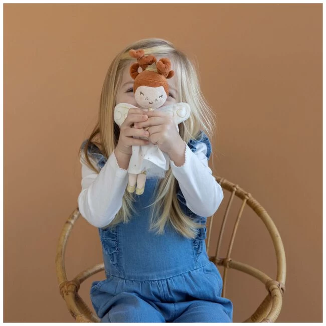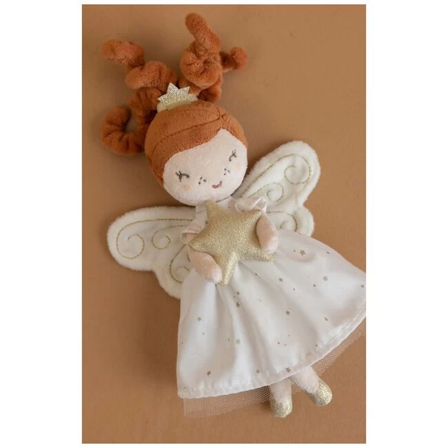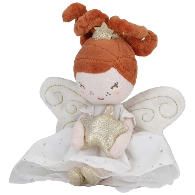 Het feetje van hoop: fee Mia. Ze brengt hoop om je te helpen je grootste dromen waar te maken. Vanuit een magische wereld hier ver vandaan is feetje Mia naar je toe gekomen om je te betoveren met haar schitterende ster. Ze is je beste vriendin en zal er altijd voor je zijn. Met haar mooie witte jurk, rode gekrulde paardenstaart, vleugels met gouddraad en ballerinaschoenen, zal Mia rond fladderen in kinderdromen en de sterren een stukje dichterbij brengen. Deze lieve zachte fee stimuleert de verbeelding, brengt sprookjes tot leven en voegt magie toe aan de kindertijd. Met dit lieve kleine Little Dutch feetje kan je kindje heerlijk knuffelen en spelen. Het feetje is heerlijk zacht en makkelijk mee te nemen. Wordt dit feetje het beste vriendje van jouw kindje? Ook erg leuk om cadeau te geven. Afmetingen: 20x12x8. Geschikt vanaf 1 jaar.