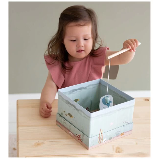 Met dit Little Dutch hengelspel kun je zoveel vissen vangen als je maar wilt. Zorg er wel voor dat je de oude schoen niet aan je hengel blijft plakken. Het mooie is dat je zelfs de moeilijkheidsgraad kunt aanpassen of je kunt er ook een minicompetitie van maken. Het aquarium is gemaakt van karton en de vissen zijn van hout en hebben nummers om de score bij te houden. Geschikt voor kindjes vanaf 3 jaar.
