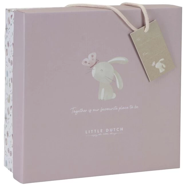 Maak kennis met Flower en Butterflies, De nieuwe beste vriendjes van je kindje. Een perfect kraamcadeau of babyshower geschenk. Deze mooie doos bevat een selectie van onze favoriete zachte producten van de FLowers & Butterflies collectie. Om mee te slapen, knuffelen en spelen. Het super zachte knuffeldoekje is heerlijk om mee te kroelen en geeft comfort tijdens het slapen. De pluche knuffel is altijd in voor een dikke knuffel en gaat graag overal mee naartoe. Deze set bevat ook een rammelend bijtspeeltje om mee te spelen. Het stimuleert de hand-oogcoördinatie en de nieuwsgierigheid van kindjes, maar het is ook geschikt om op te kauwen wanneer de eerste tandjes doorkomen. Alle 3 producten zijn verpakt in één mooie geschenkdoos. Afmetingen doos: 10,5 x 27 x 27 cm.