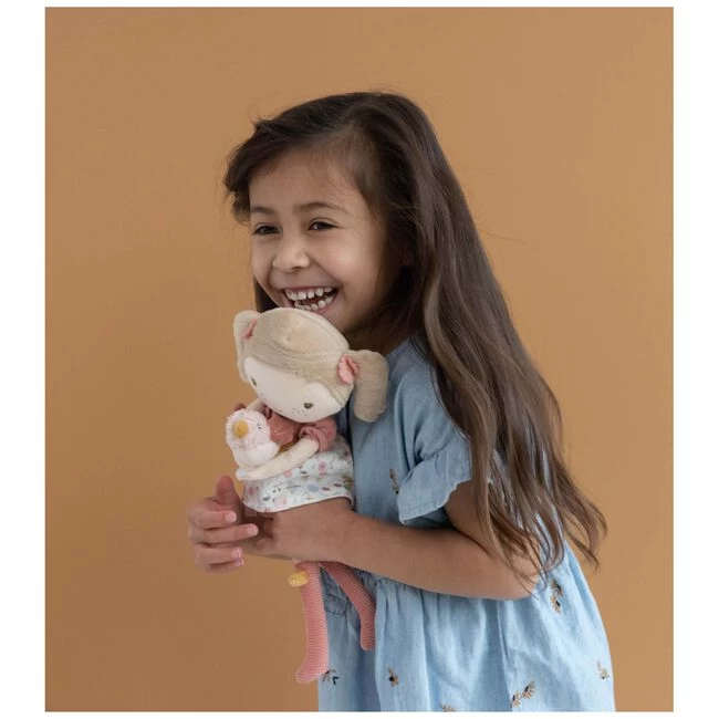 Hi! Ik ben Little Dutch pop Anna en wordt graag je nieuwe beste vriendinnetje. Met mijn knuffel vogeltje in mijn ene hand en jou in mijn andere hand, kunnen wij alles aan. Samen kunnen wij heerlijk knuffelen en spelen! Popje Anna is heerlijk zacht. Afmetingen van pop Anna is 7 x 16,8 x 20,7 cm en geschikt vanaf de geboorte.