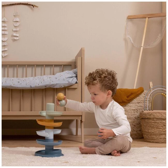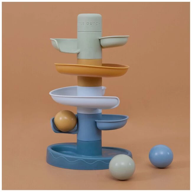 Laat de bal maar rollen! De spiraaltoren van Little Dutch zorgt voor eindeloos veel speelplezier. Deze kleurrijke set bestaat uit 5 subtiel gekleurde delen die jouw kleintje gemakkelijk op elkaar stapelt. Laat de ballen een voor een op de bovenste laag vallen en kijk hoe ze achter elkaar naar beneden rollen en slingeren. De spiraaltoren draagt bij aan de ontwikkeling van de hand-oog coördinatie en leert kleintjes over oorzaak en gevolg, waarmee het zowel leuk als leerzaam spelen is. Bij de spiraaltoren zitten standaard 3 lichte en gemakkelijk vast te pakken ballen in verschillende kleuren die bij beweging een geluidje maken. Dit speelgoed is uitgevoerd in de kenmerkende Little Dutch kleuren. De afmeting is: 18 x 18 x 30 cm. Wordt geleverd in full-colour doos. Geschikt voor kinderen vanaf 18 maanden.