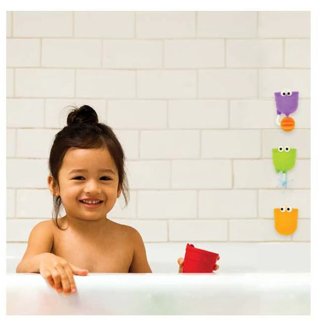 Deze Waterval ‘Falls’ badspeeltjes zijn van het leuke merk Munchkin. Hiermee kan je kindje zijn/haar eigen waterval bouwen. De set bestaat uit 4 bekertjes, waarvan er 3 aan de muur kunnen worden bevestigd met een zuignap. Met 1 bekertje kan je kindje water scheppen en in de andere bekertjes doen, om zo het water te laten stromen. Het stimuleert het reactievermogen van je kindje en hand- en oogbewegingen.