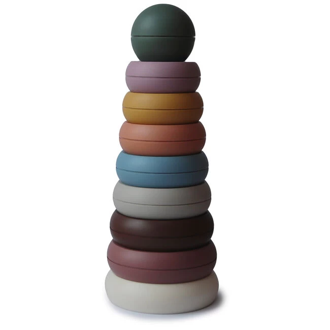 Deze prachtige ringtoren original van Mushie is gemaakt van 100% niet-giftig, BPA- en ftalaat-vrij plastic. Zachte pastelkleurtjes die mooi in je interieur passen. Deze kleurrijke ronde toren bestaande uit 8 ringen is leuk en boeiend voor je kindje om naar te kijken, terwijl het stapelen en vastpakken van de kleurrijke ringen helpt bij het ontwikkelen van de fijne motoriek en hand-oog coördinatie. Geschikt voor kinderen vanaf 6 maanden. Afmetingen: 10,5 x 10,5 x 18,5 cm (bxdxh).