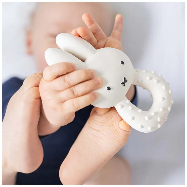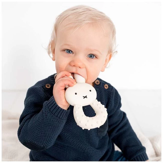 Het krijgen van melktandjes kan een stressvolle tijd voor de allerkleinsten zijn. De verschillende structuren op dit nijntje bijtspeeltje helpen de pijn te verzachten. Dit bijtspeeltje is gemaakt van 100% natuurlijk rubber, kalmeert het tandvlees en helpt tegelijk met de ontwikkeling van de zintuigen. Het handvat zorgt ervoor dat dit bijtspeeltje gemakkelijk is vast te pakken en daarnaast is het materiaal vrij van PVC, BPA, Nitrosaminen en Phthlaten. Dit speelgoed is voor baby’s een veilige keuze. Dit nijntje bijtspeeltje kan worden schoongemaakt met een licht vochtig doekje met wat zachte zeep. Wij adviseren dit bijtspeeltjes niet in bad te gebruiken of onder de kraan te houden. Het bijtspeeltje zit in een mooie geschenkdoos waardoor hij ook erg leuk is om cadeau te geven.