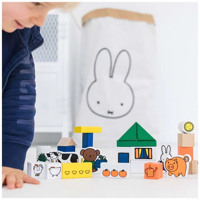 Met deze vrolijke, houten blokken van Nijntje leren kinderen op een speelse manier bouwen en hun motoriek te ontwikkelen. Deze blokkenton bevat 50 stevige, houten blokken met diverse vormen en figuren. De inhoud is een mix van gekleurde en blanke blokken. Met een hengsel om de ton makkelijk mee te kunnen nemen. Deze Nijntje blokkenset is geschikt vanaf 2 jaar.