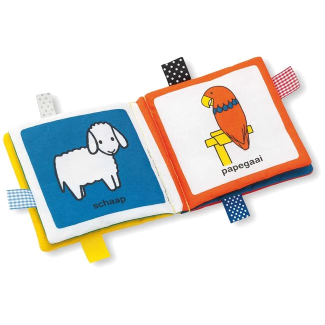 Nijntje komt veel dieren tegen in dit zachte labelboekje. Wie staat er bij het blauwe label? Zie je de leeuw bij het gele labeltje? En kijk eens achter op het boekje: wie ben jij? Een lekker dik stoffen knisperboek met belletje, labeltjes en een spiegel!