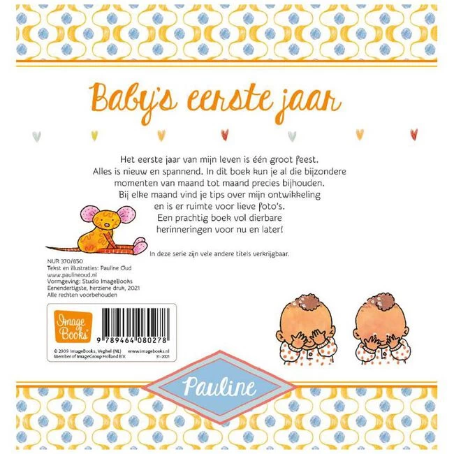 Geheel vernieuwd invulboek van Pauline Oud: Baby’s eerste jaar. Met frisse illustraties en vrolijke patronen. Alles is nieuw en spannend. Houd al die bijzondere moment in het eerste jaar bij, van maand tot maand. Lees tussendoor leuke tips over de ontwikkeling van je kindje en plak foto’s van die onvergetelijke momenten in. Een prachtig boek vol dierbare herinneringen voor nu en later.