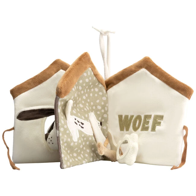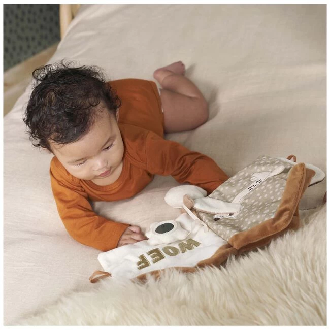 Je kindje leert verschillende dieren kennen met dit vrolijke buggyboekje uit het Snuffel de Teckel thema van Prénatal. Je kindje kan met alle labeltjes spelen, knisperen met de oortjes en het boekje laten piepen of rammelen. Dankzij de ring aan het boekje kan je hem overal aan bevestigen. Het buggyboekje is 17,5 x 17,5 cm en voelt heerlijk zacht aan. Ontdek ook de andere artikelen in het Snuffel de Teckel thema.