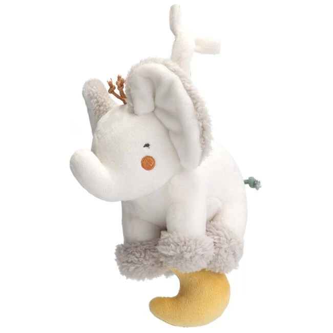 Met dit lieve muziekdoosje uit het Okki de Olifant thema van Prénatal is je kindje snel in dromenland! Het muziekdoosje is te bevestigen aan het wiegje, ledikantje of aan de box. Trek aan het onderste bolletje en het muziekdoosje speelt een melodietje. Ook een leuk kraamcadeau! Ontdek ook de andere artikelen in het Okki de Olifant thema.