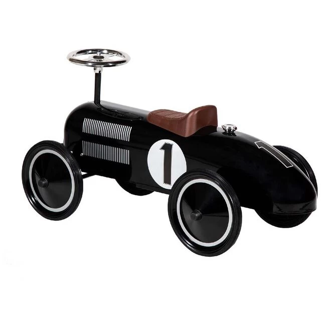 Deze mooie Retro Roller loopauto Jack in het zwart is gebaseerd op de stijl van de formule 1 wagens uit vroegere tijden. Een fantastisch cadeau voor jongens en meisjes. Urenlang speelplezier voor zowel binnen- als buiten is gegarandeerd. De Retro Roller loopauto Jack is voorzien van metalen wielen met rubberen banden en een kunststof zitting. Geschikt vanaf 2 jaar en tot 20 kg. De loopauto is volledig van metaal en eenvoudig in elkaar te zetten en te monteren. Jouw kindje kan zo opstappen!