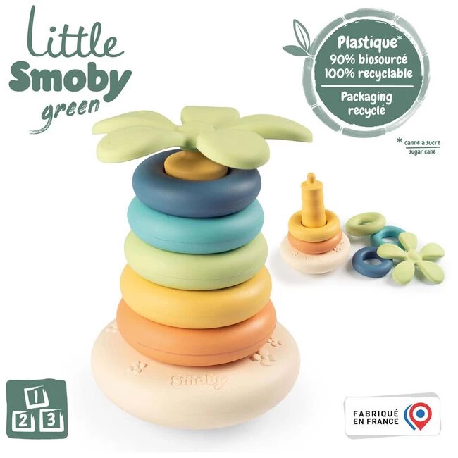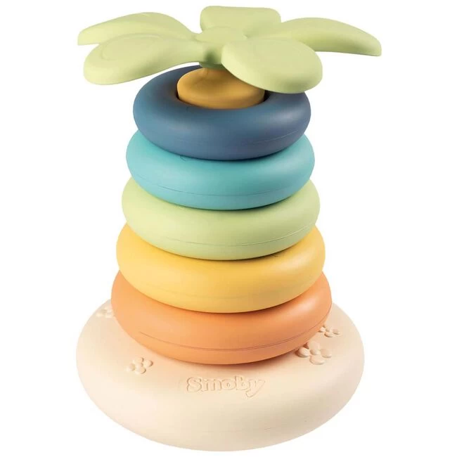 Stapel de gekleurde ringen van Somby Green tot een mooie palmboom wiebeltoren! De 5 kleurrijke stapelringen van plantaardig kunststof (gemaakt van suikerriet) hebben verschillende formaten en vormen samen een vrolijk palmboompje.