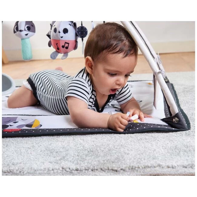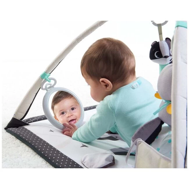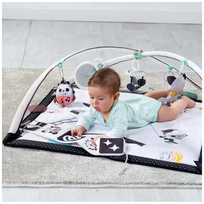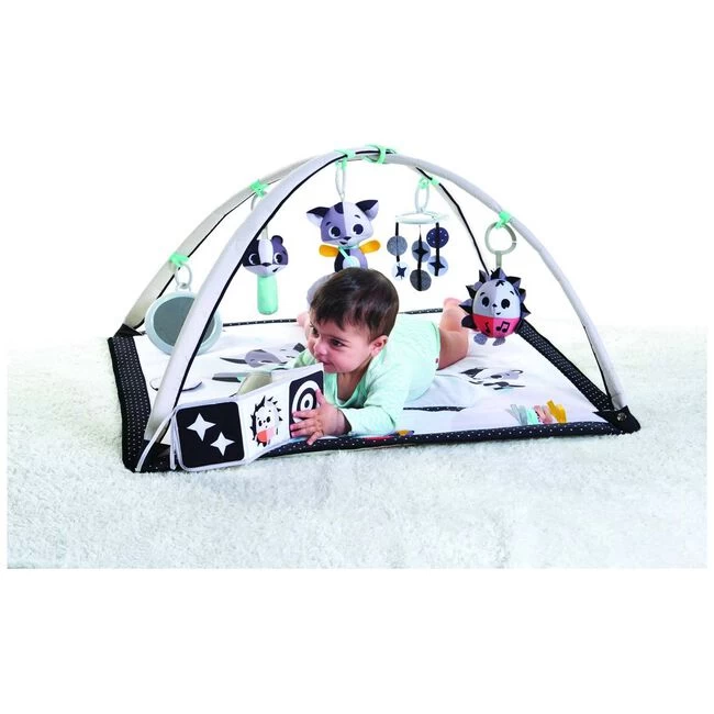 De Magical Tales Black & White Gymini is een feest voor het ogen. De contrasterende zwarte en witte kleuren stimuleren het zicht van je baby en inspireren om te verkennen, te leren en te groeien. De verstelbare bogen zijn aan te passen aan de groei van je baby. Het kleed stimulieert vaardigheden zoals verbeeldingskracht, auditieve kennis, fysieke ontwikkeling en nog veel meer. De Magical Tales™ Black & White Gymini bevat 18 verschillende ontwikkelingsactiviteiten die je kindje volop zullen vermaken.