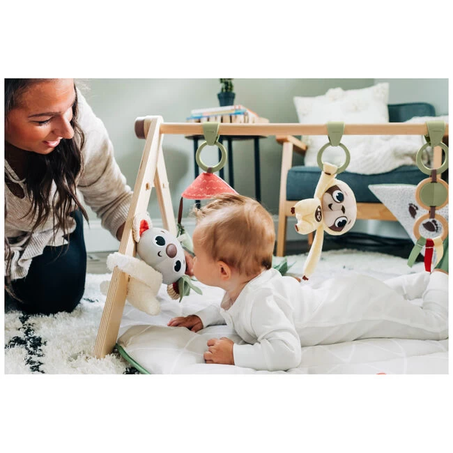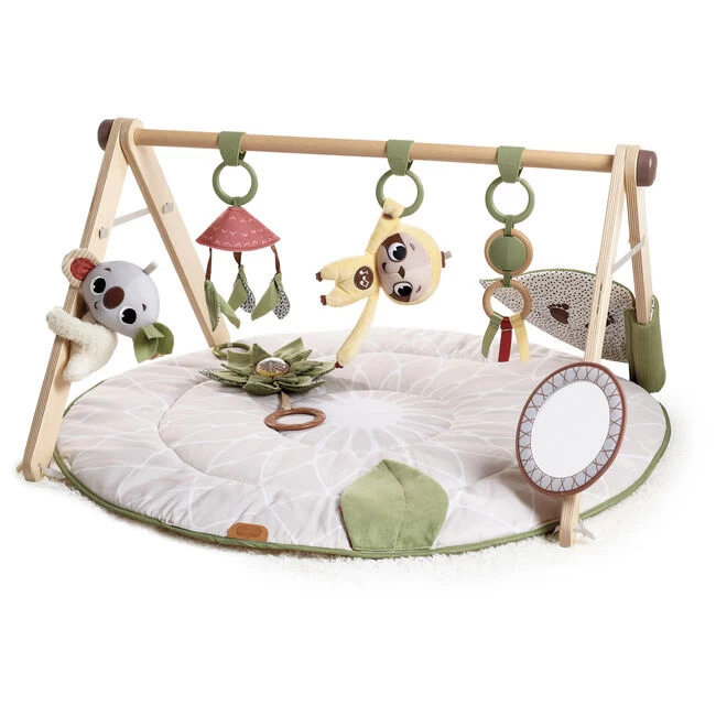 De Boho Chic Gymini van Tiny Love is uitgerust met maar liefst 20 ontwikkelingsactiviteiten voor urenlang speelplezier voor jouw kindje. Het speelkleed ondersteunt de ontwikkeling van alle vaardigheden: zintuigen, moteriek, emoties creativiteit en communicatie. Het speelkleed heeft een mooie houten speelboog die ook los gebruikt kan worden. De activiteitenmat is dubbel gevoerd en daardoor extra zacht. Aan de boog zit een muzikale luiaard die verschillende melodietjes speelt. In de koala zit een rammelaar. Verder worden er een spiegel, 3 speeltjes en een reusachtig kiekeboeblad bij geleverd. Het Tiny Love speelkleed kan in de wasmachine en wordt geleverd inclusief batterijen.Afmetingen (lxbxh): 92 x 92 x 46 cm.