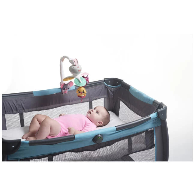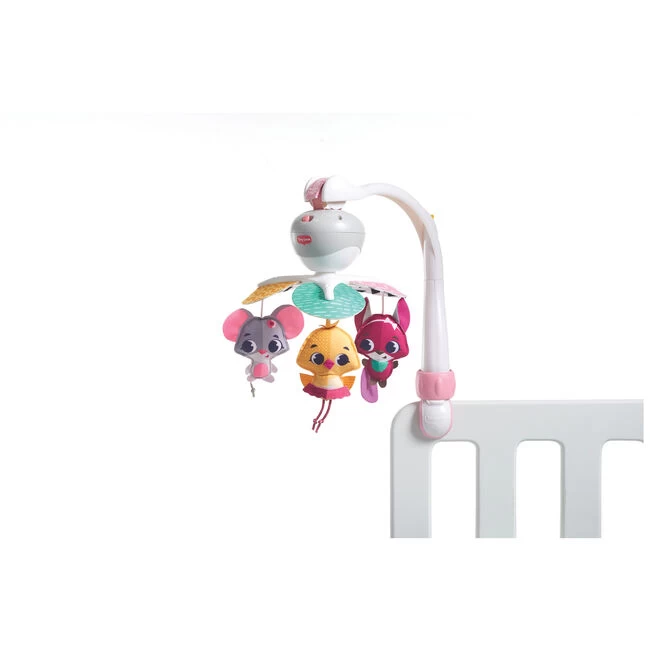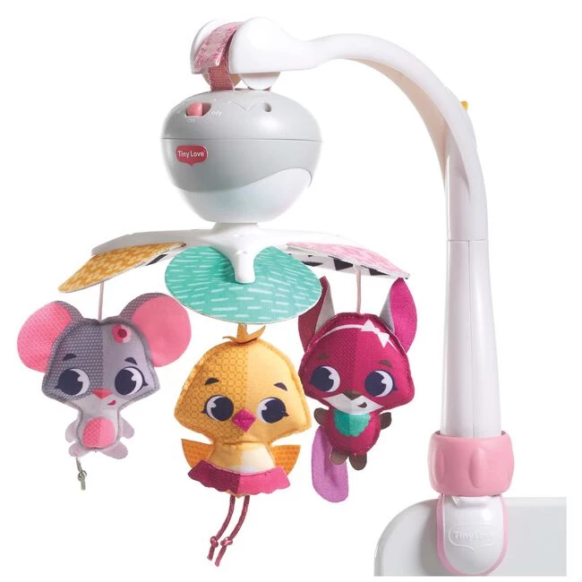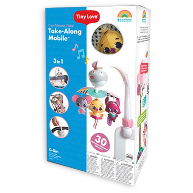 Deze kleurrijke en levendige Tiny Love Take Along Mobile Princess Tales zorg voor veel plezier onderweg. Dit schattige speelgoed geeft je kindje een vertrouwd gevoel onderweg en moedigt de emotionele ontwikkeling aan. De Take Along Mobile speelt ontspannende deuntjes af. De muziekmobiel speelt 30 minuten onafgebroken muziek en heeft 5 verschillende melodieën. Met de universele bevestigingsklem kan je de muziekmobiel vrijwel overal op bevestigen.