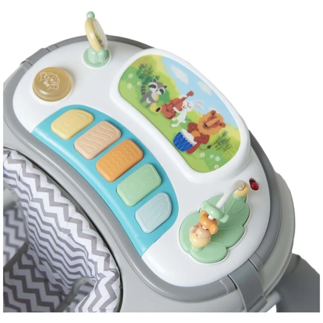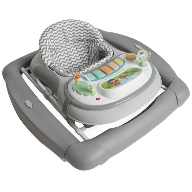 Topmark loopstoel Max 2-in-1 is een loopstoel en een schommelstoel in één. Je kindje kan de eerste stapjes onder de knie krijgen met deze loopstoel. De loopstoel is in een handomdraai om te bouwen tot een leuk schommeltje met daaronder een dekje voor de voetjes. Het elektronische speelblad is afneembaar voor nog meer plezier! Het loopstoeltje heeft 2 zwenkwielen voor en achter 2 vaste wielen. Het zitje is te verstellen in 3 posities en is comfortabel en stevig door de hoge rug in de zitting. De bekleding is afneembaar en wasbaar op de hand (gelieve niet in de wasmachine). De loopstoel wordt geleverd met trapstoppers en een dekje voor de voetjes welke gebruikt kan worden bij de schommelfunctie.