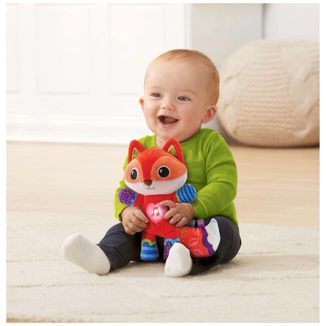 Ontdek lieve zinnetjes, rustgevende melodietjes en andere geluiden met dit lieve knuffeltje van Vtech. Het zachte vosje maakt geluid als je op het knipperende hart-toets drukt. Het vosje heeft een regelbaar volume. Het elektronische onderdeel is verwijderbaar dus het knuffeltje kan ook in de wasmachine. VTech bedtijd vosje werkt op 1 AAA batterij.