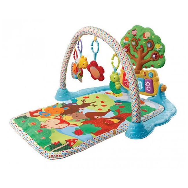 Zachte, interactieve speelmat die met je kleintje meegroeit! De allerkleinsten kunnen spelen met de drie diertjes en het spiegeltje van de boog, oudere baby¿s kunnen liggend op de buik of zittend spelen met het activiteitenpaneel. De drie verschillende speelstanden van het activiteitenpaneel laten kleintjes o.a. kennismaken met muziek, dieren, dierengeluiden, kleuren en vormen.