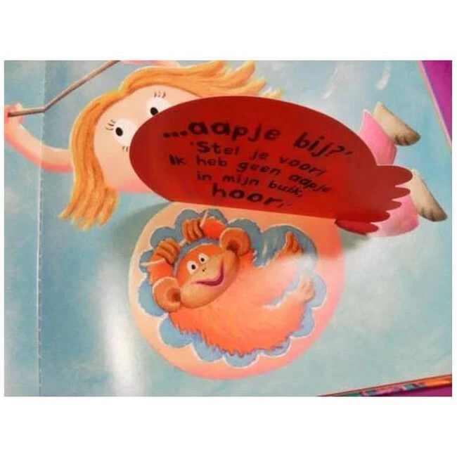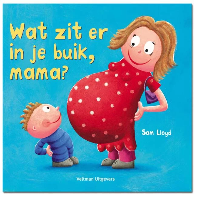Wat zit er in je buik, mama?Er zit iets in mama’s buik, maar ik weet niet wat het is. Is het een chimpansee, is het een paard of is het misschien een inktvis? Kijk snel onder de flappen! Een hartverwarmend en grappig rijmverhaal, ideaal voor kinderen die er een broertje of zusje bij krijgen.