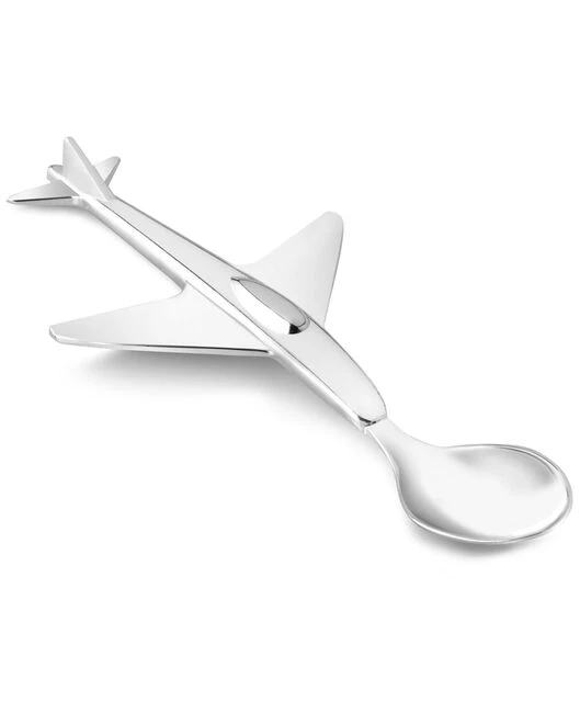 Kinderlepel in de vorm van een vliegtuig. Eten was nog nooit zo leuk! De hapjes ‘vliegen’ er zo in! De lepel is verzilverd en gelakt, waardoor poetsen overbodig is. De lepel kan gegraveerd worden bij een juwelier, wat het een persoonlijk kraam- of verjaardagscadeau maakt. Afmeting lepel: 16,9 cm lang.